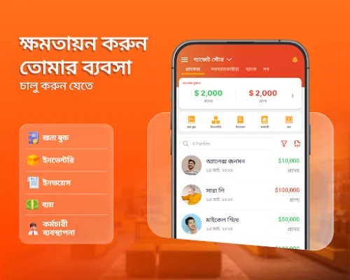 DigiKhata আপনার ব্যবসাকে আরও এগিয়ে নিয়ে যেতে বহুবিধ সুবিধা প্রদান করে। কয়েক সেকেন্ডের মধ্যে একটি কাস্টম বিজনেস কার্ড তৈরি করে আপনার নেটওয়ার্কিং সহজ করুন। মাল্টি-ডিভাইস সাপোর্টের কারণে আপনি এবং আপনার অংশীদাররা যেকোনো স্থান থেকে একটি একক অ্যাকাউন্ট পরিচালনা করতে পারবেন। ইন্টারনেট সংযোগ না থাকলেও আপনার লেজার অ্যাক্সেস করুন এবং যখনই সুযোগ পাবেন, ডেটা নিরাপদে ব্যাকআপ করে নিন। আপনার আর্থিক তথ্য সুরক্ষিত রাখতে DigiKhata ফিঙ্গারপ্রিন্ট বা পিন কোড লকের মতো উন্নত নিরাপত্তা বৈশিষ্ট্য সরবরাহ করে। এছাড়াও, এর সীমাহীন বিনামূল্যে SMS/WhatsApp রিমাইন্ডার পাঠিয়ে আপনি বকেয়া সংগ্রহ প্রক্রিয়াকে তিন গুণ দ্রুত করতে পারবেন, এবং আপনার সমস্ত ডেটা এনক্রিপ্টেড ও ক্লাউডে নিরাপদে সংরক্ষিত থাকে। DigiKhata মুদি দোকান থেকে শুরু করে বুটিক, রেস্তোরাঁ থেকে ফার্মেসী পর্যন্ত, যেকোনো ধরণের ব্যবসার জন্য আর্থিক ব্যবস্থাপনা সহজ করে তোলে।