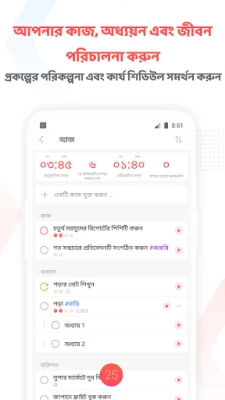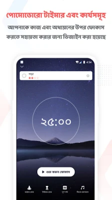 Focus To-Do-এর কেন্দ্রবিন্দুতে রয়েছে এর নমনীয় পোমোডোরো টাইমার। ২৫ মিনিটের ফোকাস সেশন সেট করুন, পুরোপুরি মনোযোগী হয়ে কাজ করুন, এবং টাইমার বাজলে ৫ মিনিটের সতেজ বিরতি নিন। আপনি আপনার প্রয়োজন অনুযায়ী পোমোডোরো এবং বিরতির সময় কাস্টমাইজ করতে পারেন, এমনকি বিরতিগুলি এড়িয়ে অবিরাম মোডেও কাজ চালিয়ে যেতে পারেন। এটি কেবল একটি টাইমার নয়, এটি একটি সম্পূর্ণ টাস্ক ম্যানেজমেন্ট প্ল্যাটফর্ম। জটিল কাজগুলোকে ছোট ছোট উপ-কাজে ভাগ করুন, গুরুত্বপূর্ণ বিষয়গুলো ভুলে যাওয়া এড়াতে পুনরাবৃত্তিমূলক রিমাইন্ডার সেট করুন এবং রঙ-কোডেড অগ্রাধিকারের মাধ্যমে আপনার দিনের সবচেয়ে জরুরি কাজগুলি চিহ্নিত করুন। অভ্যাস ট্র্যাকিং থেকে শুরু করে প্রকল্প পরিচালনা, সবকিছুই এখানে অত্যন্ত সহজে করা যায়।