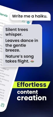 জাভিস-এর মাধ্যমে আপনার সৃজনশীলতা এবং উৎপাদনশীলতা বৃদ্ধি করুন। এর প্রাকৃতিক ভাষা প্রক্রিয়াকরণ ক্ষমতা ব্যবহার করে সহজ বর্ণনা থেকে যেকোনো কোড তৈরি করুন। জাভিস-এর সৃজনশীল লেখার দক্ষতা কাজে লাগিয়ে বেতন বৃদ্ধির আবেদনপত্র থেকে শুরু করে ধন্যবাদ জ্ঞাপনের নোট পর্যন্ত যেকোনো অনুষ্ঠানের জন্য অনন্য বিষয়বস্তু তৈরি করুন। আপনার খাদ্যাভ্যাস, হাতের কাছে থাকা উপাদান এবং ক্যালোরির লক্ষ্য অনুযায়ী ব্যক্তিগতকৃত, স্বাস্থ্যকর রেসিপি পান। এছাড়াও, জাভিস-এর জ্ঞানভাণ্ডার থেকে সাধারণ জ্ঞানের যেকোনো প্রশ্নের নির্ভুল উত্তর পান এবং টুইট ও ইনস্টাগ্রাম পোস্টের জন্য আকর্ষণীয় ক্যাপশন সহ নিখুঁত সামাজিক মাধ্যম পোস্ট তৈরি করুন।