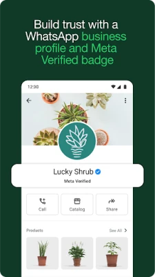 একটি পেশাদার বিজনেস প্রোফাইল তৈরি করে গ্রাহকদের আস্থা অর্জন করুন এবং আরও প্রতিক্রিয়াশীল গ্রাহক সহায়তা প্রদান করে দীর্ঘস্থায়ী সম্পর্ক গড়ে তুলুন। আপনার ব্যবসাকে আরও বেশি মানুষের কাছে পৌঁছে দিন এবং বিক্রির পরিমাণ বৃদ্ধি করুন। গ্রাহকদের জন্য লক্ষ্যযুক্ত অফার পাঠান, ক্লিক-টু-WhatsApp বিজ্ঞাপন তৈরি করুন এবং পণ্য ক্যাটালগ প্রদর্শন করে তাদের আকর্ষণ করুন। Meta Verified*** সাবস্ক্রিপশনের মাধ্যমে আপনার ব্যবসার সত্যতা জোরদার করে গ্রাহকদের কাছে বিশ্বাসযোগ্যতা আরও বাড়ান।
