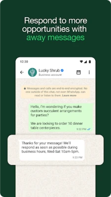 আপনার ব্যবসার কর্মপ্রবাহকে আরও কার্যকর করতে WhatsApp Business আপনাকে সময় বাঁচাতে ও গ্রাহক অভিজ্ঞতা উন্নত করতে বিভিন্ন সুযোগ দেয়। স্বয়ংক্রিয় দ্রুত উত্তর এবং ব্যস্ততার সময় বার্তা পাঠানোর সুবিধা দিয়ে কোনো গ্রাহকের অনুসন্ধান যেন মিস না হয় তা নিশ্চিত করুন। গুরুত্বপূর্ণ কথোপকথন সহজে খুঁজে বের করতে এবং গুছিয়ে রাখতে লেবেল ব্যবহার করুন। এছাড়াও, অফার বা নতুন খবর প্রচারের জন্য স্ট্যাটাস তৈরি করতে পারেন। ভবিষ্যতে **ইন-অ্যাপ অর্ডার ও পেমেন্টের ব্যবস্থা করে গ্রাহকদের জন্য কেনাকাটাকে আরও সহজ করে তুলুন।